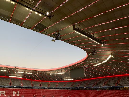Осветительные системы без мерцания для 50/60 Hz, CRI 90+ для телевизионных камер, динамическое управление светом для матчей, церемоний и концертных мероприятий.